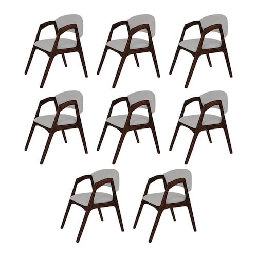 Conjunto com 8 Cadeiras de Jantar Gabriela em Madeira e Mdf Castanho Linho Cinza Prata
