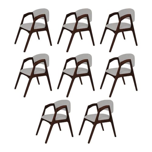 AS IMAGENS SÃO MERAMENTE ILUSTRATIVAS E PODEM SOFRER VARIAÇÕES DE COR E PEQUENOS DETALHES DE ACORDO COM O SEU MONITOR, ILUMINAÇÃO DO AMBIENTE E ATÉ MESMO A SUA PERCEPÇÃO VISUAL.Conjunto com 8 Cadeiras de Jantar Gabriela em Madeira e Mdf Castanho Linho Cinza Prata