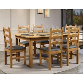 6 Cadeiras com Assento Estofado Medida da Mesa (A x L x P): 78,50 x 160 x 90 Peso da Mesa: 28,3 kg Mesa suporta até: 120 kg Acabamento da Cadeira/Banco: Pintura UV Acabamento da Mesa: Pintura UV Acompanha Manual de Instalação: Sim Almofada do assento: Fixa Ambiente Principal: Sala de Jantar Cadeira/Banco Estofada: Somente Assento Estofado Cadeira/Banco estofada: Somente Assento Estofado Cadeira/Banco suporta até: 90 kg Cadeira/Banco Suporta Até: 90.0000 codigo_ean: 7900288286888 Complexidade da Montagem: Baixa: pode ser montado por uma pessoa sozinha Configuração do Conjunto: Mesa com Cadeiras Cor: Nogueira/Cinza Cor do Produto: Nogueira/Cinza Cor Secundária: Marrom De Canto (Canto Alemão): Não Design da Base: 4 Pés Escala de Brilho: Semi-Brilho Espessura do Tampo: 25 mm Estrutura do Assento: Madeira Maciça Formato do Tampo: Retangular Informações Complementares: Possui cantos arredondados e acabamentos com Pintura UV e Verniz Acetinado Atóxico. Encostos das cadeiras no estilo ripado em peças angulares torneadas, aumentando a estabilidade e conforto. Itens Inclusos: 1 Mesa, 6 Cadeiras, Kit Ferragens e Manual de Montagem Linha ou Coleção: Napoli Manual de Montagem e Instalação: https://product-hub-prd.madeiramadeira.com.br/423994869/documents/a29f7541-381c-4744-82cf-5bc9fd06c22213264674634117598571355201.pdf Marca: Espresso Móveis Material da Base da Mesa: Madeira Maciça Material da Estrutura da Cadeira: Madeira Maciça Material do Tampo: Madeira Maciça Material Principal: Madeira Maciça Medida da Cadeira/Banco (A x L x P): 99 x 40 x 44 Medida do Tampo (L x C x E): 160 x 90 x 2,5 Mesa Extensível: Não Necessita Montagem: Sim Origem do Produto: Nacional Peso da Cadeira/Banco: 5,52 kg Possui Apoio para Braços: Não Possui Apoio Para os Pés: Não Possui Vidro: Não Quantidade de Cadeiras: 6 Quantidade de Lugares: 06 Recomendações de Uso, Manutenção e Limpeza: Limpar com flanela ou pano macio seco, não utilizar produtos abrasivos, desengordurantes, álcool ou solvente. Sistema de Montagem: Parafuso, cavilha e cola. Tipo de Madeira Maciça da Base da Mesa: Pinus Tipo de Madeira Maciça do Tampo: Pinus
