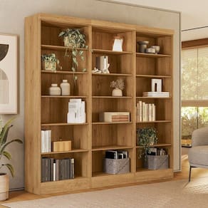 Com design contemporâneo, o conjunto com três Livreiros Multiuso é ideal para compor a decoração de diversos cômodos, levando funcionalidade e praticidade para a organização do ambiente. Possui prateleiras móveis, que permitem regular o espaço e acomodar objetos maiores. O produto possui sistema anti-tombamento, que garante segurança e evita riscos de acidentes. Produto Montado: Sim Acabamento da Prateleira: Pintura UV Ambiente Principal: Sala de Estar codigo_ean: 7900288317186 Complexidade da Montagem: Alta: deve ser montado por um montador especializado Cor: Freijo Toq Cor do Produto: Freijó Toq Cor Flex: Não Cor Interna: Freijó Escala de Brilho: Fosco Escala de Brilho da Prateleira: Fosco Informações Complementares: • Prateleiras móveis para melhor organização do ambiente; • Produto multifuncional, podendo ser utilizado em diversos espaços; • Ideal para colocação de livros e objetos decorativos; • Embalagem feita com papelão kraft, revestido por plástico, com isomant Itens Inclusos: 3 Estantes, Kit Ferragens e Manual de Montagem Linha ou Coleção: Módulos e Complemento Manual de Montagem e Instalação: https://product-hub-prd.madeiramadeira.com.br/882065998/documents/da57450b-1527-4815-b8a9-db1ec5f8ed383361205128417685917695092.pdf Marca: Qmovi Material da Prateleira: MDP Material Principal: MDP Montagem Flex: NÃO Necessita Montagem: Sim Origem do Produto: Nacional Peso: 75,9 kg Peso Máximo por Prateleira: 7 kg Possui Acabamento na Parte de Trás: Não Possui Espelho: Não Possui iluminação: Não Possui Pés: Não Possui Portas: Não Possui Prateleiras: Sim Possui Rodízio: Não Possui Vidro: Não Recomendações de Uso, Manutenção e Limpeza: Não utilize produtos químicos ou abrasivos para limpar seus móveis. A manutenção em geral, exige apenas a retirada do pó com um pano seco. Mas, a limpeza também pode ser feita utilizando um pano levemente umedecido com água e/ou álcool. Em seguida, a superfície deve ser seca com a ajuda de um pano limpo e macio. Não expor o produto diretamente à luz solar. Sapatas Niveladoras: Não Sistema de Montagem: Parafusos e Cavilhas Suporta Até (kg): 126 kg