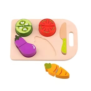 Conjunto Comidinhas Infantis em Madeira Cortando Vegetais com 10 Peças Didáticas