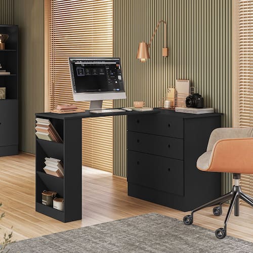 Características: Estrutura em MDP Revestido em Pintura UV Abertura de 90° para melhor aproveitamento da mesa Rodízio na base para auxiliar a movimentação 03 gavetas sendo um gavetão com amplo espaço Prateleira lateral para acomodar livros e demais objetos 02 Portas articuladas Ideal para colocação de livros e objetos decorativos Sistema anti-tombamento para evitar riscos de acidentes.