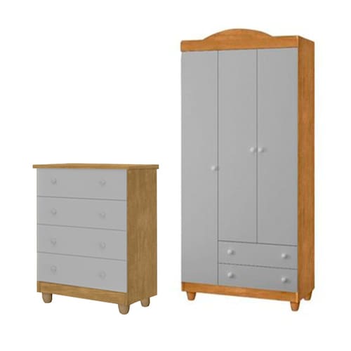 Tipo: Conjunto roupeiro e cômoda Modelo: Lara Cor: Nature/Cinza