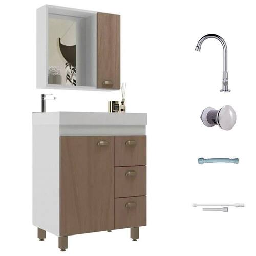 Conjunto Completo de Banheiro 3 Pecas Belizze Maldivas Noce 60 cm
