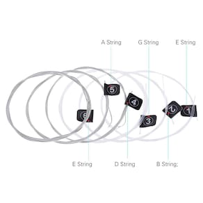 - As 4ª, 5ª e 6ª cordas são feitas de núcleo de nylon revestido com corda prateada.
