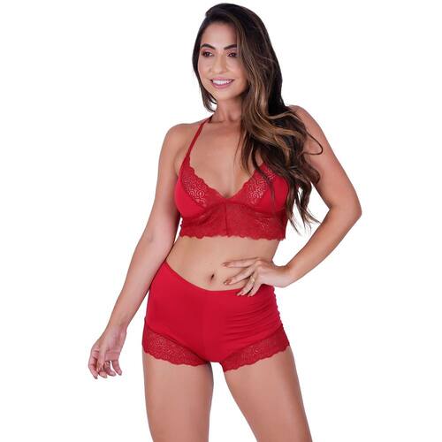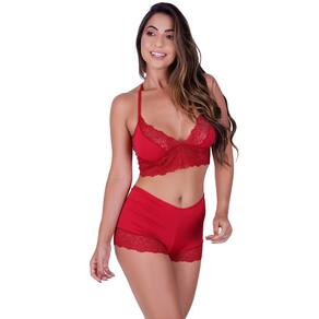O conforto e a delicadeza que toda mulher merece! Sutiã sem bojo e sem arco em tecido e renda de poliamida em parte do busto em toda a pala, sua elasticidade facilita vestir a peça já que não tem abertura. As alças com regulagem de altura em metal são cruzadas no pescoço, ideal para usar com blusas ou vestidos de costas seminuas. Calcinha estilo caleçon em tecido e renda de poliamida nas barras das pernas e viés na cintura.