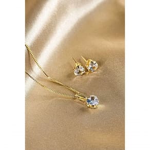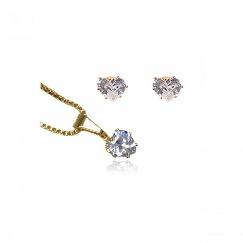 Este conjunto encantador apresenta um coração cravejado com zircônias banhado em ouro 18 quilates, oferecendo um toque de romance e brilho ao seu visual. Seu design delicado e elegante faz dele uma escolha perfeita para adicionar um toque de sofisticação aos seus looks diários.