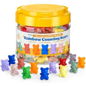Conjunto de 200 ursos de pelúcia XINHUIDALSQ Rainbow Counting Bears - O pacote inclui: 200 balcões de ursinhos de pelúcia vêm com uma jarra de armazenamento portátil com alça, fáceis de organizar e armazenar para uso no próximo estudo em casa - Cada ursinho colorido tem altura: 1 polegada, peso: 3 g, ajude seus filhotes a dominar as habilidades matemáticas iniciais, contando com o lindo contador de ursos de plástico! - Os ursos que contam arco-íris têm 10 cores brilhantes, cultivam a classificação e as habilidades de cores do bebê, o plástico de alta qualidade não tem cheiro peculiar, acompanham as crianças a crescerem de forma saudável - Os contadores de ursinhos de pelúcia para matemática são ótimos para alunos táticos práticos, ajudando as crianças a entender conceitos matemáticos abstratos com manipuladores matemáticos de contagem de ursos para crianças com mais de 3 anos, brinquedos educativos para crianças pequenas que estimulam o interesse em aprender
