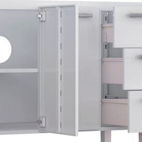 - Quantidade de portas: Gabinete (3); Armário (4)