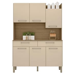 O Kit Cozinha irá se tornar o charme de sua cozinha, seu design diferenciado dispõe de um nicho para decoração superior podendo ser utilizado para vasos, flores e outros. Tem a sua disposição de um grande espaço para Eltrodomésticos podendo acomodar um micro-ondas, sua matéria prima valoriza o meio ambiente sendo feita de madeira de reflorestamento.
