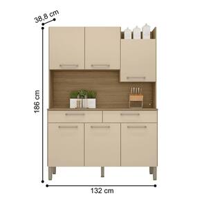 O Kit Cozinha irá se tornar o charme de sua cozinha, seu design diferenciado dispõe de um nicho para decoração superior podendo ser utilizado para vasos, flores e outros. Tem a sua disposição de um grande espaço para Eltrodomésticos podendo acomodar um micro-ondas, sua matéria prima valoriza o meio ambiente sendo feita de madeira de reflorestamento.