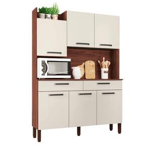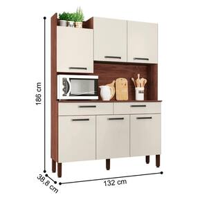 O Kit Cozinha irá se tornar o charme de sua cozinha, seu design diferenciado dispõe de um nicho para decoração superior podendo ser utilizado para vasos, flores e outros. Tem a sua disposição de um grande espaço para Eltrodomésticos podendo acomodar um micro-ondas, sua matéria prima valoriza o meio ambiente sendo feita de madeira de reflorestamento.