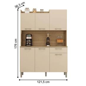 O Armário irá se tornar o charme de sua cozinha, seu design diferenciado dispõe de um nicho para decoração superior podendo ser utilizado para vasos, flores e outros. Tem a sua disposição de um grande espaço para Eltrodomésticos podendo acomodar um micro-ondas, sua matéria prima valoriza o meio ambiente sendo feita de madeira de reflorestamento. Com acabamento fosco e textura sensível ao toque em vários padrões mordernos.