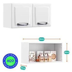 A Cozinha Completa New Premium também conta com 8 portas de bater e duas gavetas com corrediças telescópicas