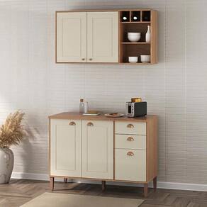 Modelo: Conjunto de Armario Aereo Com Nicho com Balcão Tunisia com Tampo 120 cm;