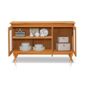 Conjunto Cristaleira com Buffet 3 Portas em Madeira Maciça Acabamento Premium Imbuia - Marrom