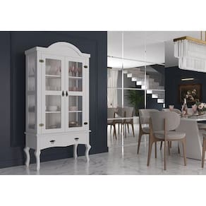 Inspirada no estilo francês da época de Luís XV, a Cristaleira Luis XV é a definição de sofisticação. Com suas curvas suaves, detalhes esculpidos e pés cabriolé, esta cristaleira confere uma aura de requinte a qualquer ambiente. Além disso, suas duas portas de vidro temperado e três prateleiras oferecem um espaço versátil para exibir sua coleção de louças, cristais e objetos de decoração.
