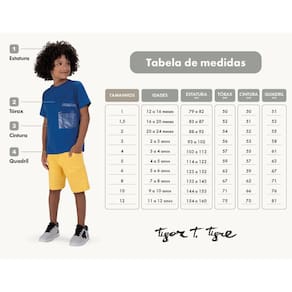 O Conjunto Tigor T. Tigre promete um visual super descolado para os meninos. A camiseta em meia malha conta com mangas curtas, para dar destaque ao look. Já a bermuda é confeccionada em tecido sintético com toque aveludado para maior conforto, possui elástico no cós. Aposte nessa tendência para seu pequeno ficar ainda mais lindo!