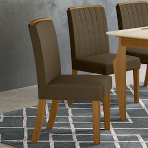FICHA TÉCNICA: Escala de Brilho Cadeiras: Fosco Cadeiras Possui Rodízio: Não Peso Suportado por Cadeira: 120 Kg Estrutura Assento: MDP/MDF Altura Assento até o chão: 45,5 Cm Revestimento Assento: Tecido Suede Enchimento Assento: Espuma D18 Almofada Assento: Não possui Tipo Assento: Fixo Estrutura Encosto: MDP/MDF Revestimento Encosto: Tecido Suede Enchimento Encosto: Espuma D18 Tipo Encosto: Fixo Material dos pés: MDF Medidas Montado: 95,5 x 47 x 58,5 Cm Peso Montado: 8 Kg