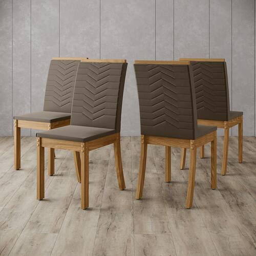 CARACTERISTICAS GERAIS: Estilo: Moderno Linha: Dina Ambiente Principal: Sala de jantar Marca: Henn Qtd. Lugares: 04 Origem: Nacional Garantia do Fornecedor: 3 Meses Itens Inclusos: 01 Conjunto de 04 Cadeiras Dina e Instrucao de Montagem