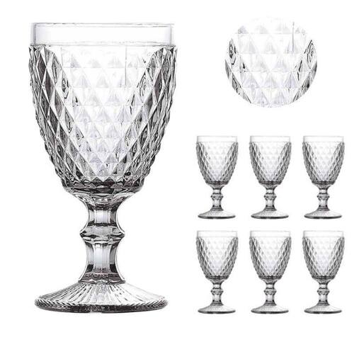 Este conjunto elegante é composto por 6 taças produzidas em vidro de alta qualidade, com acabamento em relevo no clássico estilo bico de abacaxi.