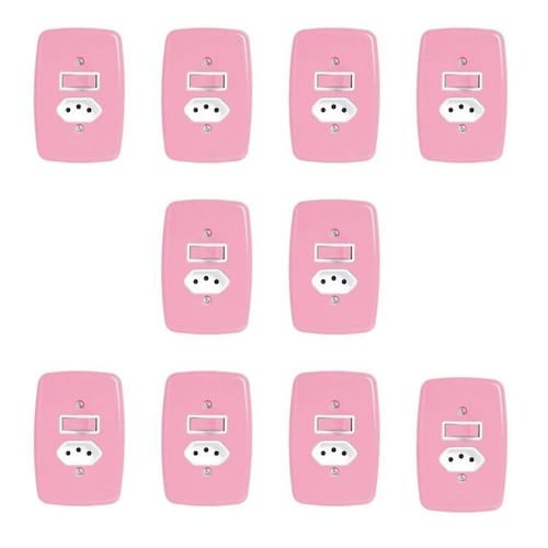 Com design sofisticado esse conjunto é utilizado para o acionamento manual da iluminação (liga/desliga) e permite a conexão dos aparelhos e dispositivos à rede elétrica em diversos ambientes residenciais, comerciais ou industriais. Nossas placas e teclas são produzidos em ABS e com tratamento anti-UV garantindo a cor e o brilho por muito mais tempo Altura do Conjunto: 18 cm Ambiente: null Ambiente Principal: Sala de Estar Cor: Rosa Cor Predominante: Rosa Garantia do Fornecedor: 5 anos Informação Complementar: 10x Interruptor de 1 Tecla Simples e Tomada 2p+t 20A , com Placa 4x2 Rosa Largura: 12 cm Altura: 18 cm Peso: 0,062 g