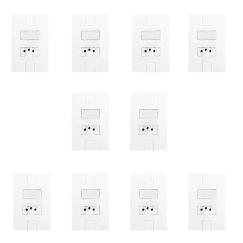 Com design moderno e linhas retas esse conjunto é utilizado para o acionamento manual da iluminação (liga/desliga) e permite a conexão dos aparelhos e dispositivos à rede elétrica em diversos ambientes residenciais, comerciais ou industriais. Nossas placas e teclas são produzidos em ABS e com tratamento anti-UV garantindo a cor e o brilho por muito mais tempo Altura do Conjunto: 18 cm Ambiente: null Ambiente Principal: Sala de Estar Cor: Branco Cor Predominante: Branco Garantia do Fornecedor: 5 anos Informação Complementar: 10x Interruptor de 1 Tecla Simples e Tomada 2p+t 20A , Modular, com Placa 4x2 Branco Largura: 12 cm Altura: 18 cm Peso: 0,085 g