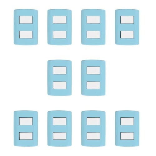 Com design sofisticado esse conjunto é utilizado para o acionamento manual da iluminação (liga/desliga) em diversos ambientes residenciais, comerciais ou industriais. As placas e teclas são produzidos em ABS e com tratamento anti-UV garantindo a cor e o brilho por muito mais tempo. Altura do Conjunto: 12.5 cm Ambiente: null Ambiente Principal: Sala de Estar Cor: Azul/Branco Cor Predominante: Azul Garantia do Fornecedor: 5 anos Informação Complementar: 10x Interruptor de 2 Teclas Simples, Modular, com Placa 4x2 e Suporte Azul/Branco Largura: 8.5 Altura: 12.5 Peso: 0.06900000000000001