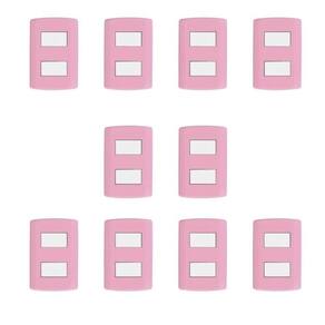 Com design sofisticado esse conjunto é utilizado para o acionamento manual da iluminação (liga/desliga) em diversos ambientes residenciais, comerciais ou industriais. As placas e teclas são produzidos em ABS e com tratamento anti-UV garantindo a cor e o brilho por muito mais tempo. Altura do Conjunto: 12.5 cm Ambiente: null Ambiente Principal: Sala de Estar Cor: Rosa/Branco Cor Predominante: Rosa Garantia do Fornecedor: 5 anos Informação Complementar: 10x Interruptor de 2 Teclas Simples, Modular, com Placa 4x2 e Suporte Rosa/Branco Largura: 8.5 Altura: 12.5 Peso: 0.06900000000000001
