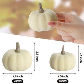 Conjunto de abóboras Artgar Fall – 10 mini abóboras brancas para decoração DIY Apresentamos o conjunto de abóboras artificiais, um item essencial para adicionar um toque de charme à sua decoração sazonal. Este conjunto inclui 10 mini abóboras brancas, perfeitas para criar uma atmosfera aconchegante de outono em sua casa. Com sua aparência realista e tamanho versátil que varia de 2,1 a 7,4 cm de diâmetro, estas abóboras bege são perfeitas para vários projetos decorativos. Cada abóbora neste conjunto é cuidadosamente trabalhada com materiais de qualidade para garantir durabilidade e um visual realista. Feitas de espuma premium, estas abóboras artificiais são leves e à prova d'água, tornando-as para uso interno e externo. Você pode exibi-los com confiança em sua mesa de jantar, lareira, peitoril da janela ou qualquer outro espaço que precise de um toque festivo. Liberte sua criatividade com estas abóboras fáceis de usar. Use canetas coloridas para pintá-las em cores diferentes ou deixe sua imaginação correr solta e desenhe expressões temáticas de Halloween ou Ação de Graças. A superfície lisa dessas abóboras decorativas oferece a tela perfeita para seus empreendimentos artísticos. Estas decorações versáteis de abóbora não são apenas ótimas para decoração pessoal de casa, mas também para eventos e celebrações. Elas são perfeitas para festas temáticas de fazenda, casamentos e mesas de outono. Crie peças centrais deslumbrantes combinando-as com outros elementos de outono, como folhagem, pinhas ou velas. Com pequenas abóboras, você pode elevar sua decoração sazonal e adicionar um toque caprichoso a qualquer espaço. - Mini abóboras bege: o conjunto de 10 peças de abóboras brancas artificiais da Artgar é para criar um ambiente aconchegante de outono. Com tamanhos que variam de 5,3 cm a 7,4 cm de diâmetro, estas abóboras adicionam um toque de charme às suas decorações - Decoração rústica de colheita: estas pequenas abóboras realistas são para o Halloween, Ação de Graças e decorações com tema de outono. Adicione um toque de elegância e charme à sua casa com estas abóboras versáteis - Opções de decoração versáteis: as abóboras de espuma são para centros de mesa de mesa, grinaldas, expositores de lareira e outros projetos de decoração de outono DIY. Adicione um toque de elegância e calor à sua casa ou espaços de eventos - Criação DIY: as mini abóboras bege são para liberar sua criatividade. Use canetas coloridas para pintá-las em ou desenhe personagens e expressões para o Dia das Bruxas ou Ação de Graças. Deixe suas habilidades artísticas brilharem e crie decorações exclusivas de abóbora que impressionarão a todos - Longa duração e reutilizável: feitas de materiais de qualidade, as abóboras falsas são duradouras e podem ser reutilizadas por várias estações. Elas proporcionam beleza duradoura e são uma escolha econômica para decoração