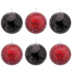 Decore sua árvore neste Natal com o conjunto de 12 bolas natalinas Hallmark inspiradas no clássico moderno Disney Tim Burton "O Estranho Mundo de Jack". Cada bola metálica inquebrável apresenta design duplo, com imagens estilizadas de Jack Skellington, Sally, Zero, Lock, Shock e Barrel de um lado, e padrões festivos do outro, trazendo um toque assustadoramente divertido para sua decoração. Com aproximadamente 6,35 cm de diâmetro, esses enfeites são ideais para fãs da obra e colecionadores que querem celebrar o espírito natalino com um tema icônico. Vêm com fitas de cetim branco para fácil pendurar e embalagem pronta para presente.