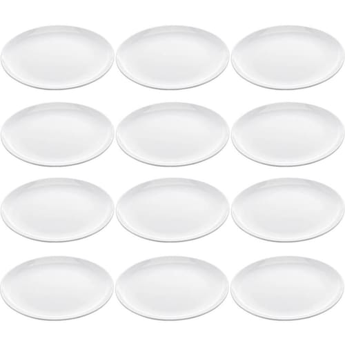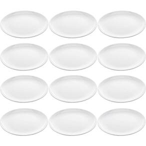 Garantia: 90 dias / Peso total: 2,688kg / Cor predominante: branco / Ref: 7798138823884; Dimensões de cada prato: 25,5cm (D) x 2,5cm (A); Material: melamina; Conteúdo: 12 pratos brancos lisos.