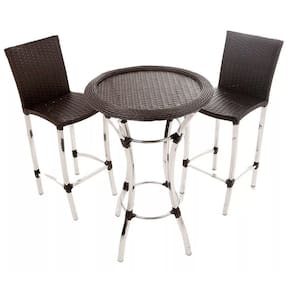 Conjunto de 2 Banquetas e Bistrô em Alumínio para Cozinha, Balcão, Edícula - Trama - Preto