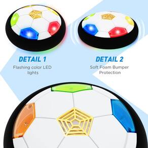 KKONES Bola de futebol flutuante para crianças (conjunto de 2), bola de futebol flutuante a ar operada por bateria com luz LED e amortecedor de espuma macia para jogos internos e externos, presentes para meninos e meninas de 3 anos, 4, 5, 6, 7, 8 a 16 anos, meninos e meninas - Brinquedo de futebol super exclusivo - Nossos brinquedos de futebol para crianças incluem uma bola flutuante extra em uma caixa separada. A bola de futebol flutuante precisa ser alimentada por 4 pilhas AA (não incluídas). Os quatro compartimentos de baterias também garantem maior tempo de diversão. Esta bola flutuante de futebol é adequada para crianças e adolescentes, proporciona tempo para entretenimento e exercícios para todas as idades. - Bola de futebol com luz LED durável – Com um motor de desempenho atualizado, a bola flutuante agora é mais confiável e paira mais alto, garante estabilidade de deslizamento de alta qualidade e durabilidade de longa duração. As luzes LED piscando com cores que mudam ajudam a atrair a atenção das crianças e tornam o jogo noturno do seu filho ilimitado. - Move-se facilmente no chão de madeira – A bola de futebol iluminada flutua em sua própria almofada de ar, o que a ajuda a deslizar e se recuperar facilmente. Todo o material é muito seguro ao toque. A borda de espuma macia e flexível pode não apenas proteger as crianças de se machucarem, mas também proteger seus móveis e outras coisas de danos. - Ótimo brinquedo de futebol interno para crianças – A bola flutuante é de boa qualidade e fácil de dobrar e armazenar para brincar na sala da família. Jogue futebol com toda a família ou amigos e sinta o poder da unidade através dos esportes, melhore o relacionamento entre pais e filhos e boa amizade, enquanto isso, distrai seus filhos de brincadeiras baseadas em tela. - Muita diversão para todas as idades - Este é um presente perfeito para qualquer amante de futebol! Ótimo para crianças de todas as idades, meninos ou meninas. As bolas de futebol flutuantes são o brinquedo perfeito para qualquer jogo de futebol em uma superfície lisa, quer seus filhos estejam dentro ou fora de casa. Boa atividade interna quando está frio e com neve!
