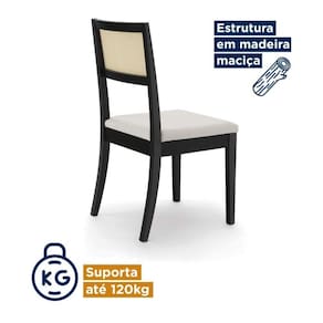 A Cadeira Madeira Maciça Tiê é muito confortável! O encosto levemente inclinado garante o conforto para refeições, leituras e estudos com seu notebook, além de ser super fácil de montar! A Cadeira Tiê possui encosto telado, um detalhe que acrescenta estilo, deixando sua sala de jantar mais moderna e pronta para receber sua família. Também possui assento estofado com espuma D23 e revestido com tecido linho bege claro, garantindo o conforto e durabilidade, tingida com aplicação ultra violeta. Possui pintura UV, as seguintes medidas: 92,5cm de altura x 45cm de largura x 54cm profundidade. Depois conta para a gente como foi sua experiência com o produto nos comentários! Acabamento da Estrutura: Pintura UV Almofada do assento: Fixa Altura: 92,5 cm Altura do assento até o chão: 45 cm Complexidade da Montagem: Baixa: pode ser montado por uma pessoa sozinha Cor: Preto/Bege Claro Cor Predominante: Preto Dobrável: Não Enchimento do Assento: Espuma D-23 Escala de Brilho: Fosco Estrutura do Assento: Chapa de MDF Estrutura do Encosto: Madeira Eucalipto Garantia: 24 meses Giratória: Não Informações Complementares: Tingida com aplicação ultra violeta - Pintura UV Largura: 45 cm Linha ou Coleção: Tiê Manual de Montagem e Instalação: https://cdn2.madeiramadeira.com.br/atributo/herval-m-veis-rs/755960-639023-cadeira-ti.pdf Material da Base: Madeira Eucalipto Material da Estrutura: Madeira Maciça Necessita Montagem: Sim Origem do Produto: Nacional Peso: 6,4 kg Possui Apoio para Braços: Não Possui Apoio Para os Pés: Não Possui Rodízio: Não Profundidade: 54 cm Revestimento do Assento: Linho Revestimento do Encosto: Palha de fibra de algodão tramada Sistema de Montagem: Parafuso, Porca e Cavilha Suporta Até (kg): 110 kg Tipo de Assento: Fixo Tipo de Encosto: Fixo Tipo de Madeira Maciça: Eucalipto