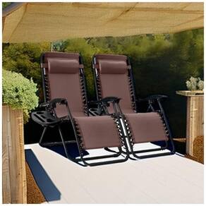 Nome do Modelo: Conjunto de 2 Cadeiras de Pátio Reclináveis de Gravidade Zero com Suporte para Copos,
