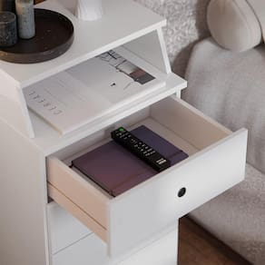 Esta mesa de cabeceira é perfeita para adicionar um toque elegante ao seu quarto. Com quatro gavetas espaçosas, você terá muito espaço para guardar seus pertences pessoais. Com seu design moderno e funcionalidade prática, esta mesa de cabeceira é uma adição indispensável ao seu espaço de dormir.