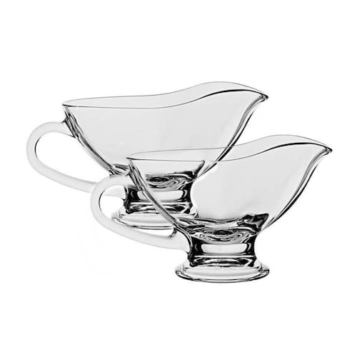 Lindo conjunto de 2 molheiras em vidro liso, ideal para servir de maneira charmosa o molho à parte, seja para salada, carnes ou até sobremesa.