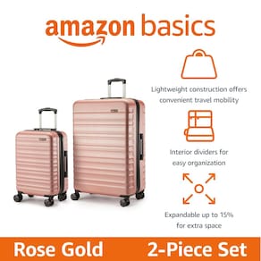 Amazon Basics Conjunto de bagagem de 2 peças (53 cm, 76 cm), malas rígidas com rodas, expansível para até 25% mais espaço, com superfície resistente a arranhões, quatro rodas multidirecionais, ouro