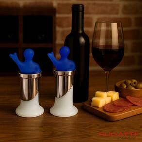 O jogo de rolhas para vinho ou champagne em formato de homem da Bugatti é feita de silicone de qualidade alimentar, pode entrar em contato diretamente com os alimentos, estilosa e durável.