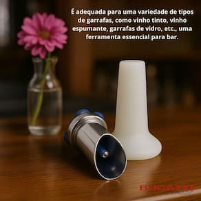 A tampa da garrafa de champagne ou vinho é fácil de inserir e retirar, conveniente e economiza trabalho, muito adequada para bares e uso doméstico. Possui uma base para acomodar a rolha quando não utilizada.