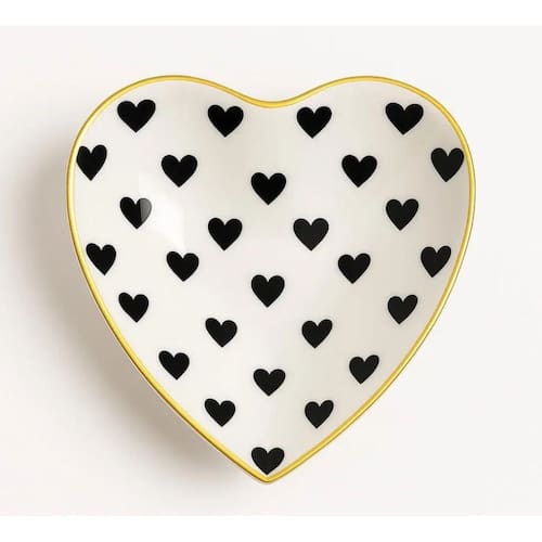 Conjunto de 2 Tigelas de Vidro em Formato de Coração - Branco e Preto - 18cm