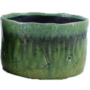 plantadores amplos Benjara Foy, cerâmica verde de dois tons, redondo e estilo moderno - Conjunto de dois vasos - Os vasos