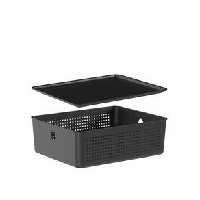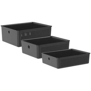 Conjunto de 3 Cestos Flow com Tampa Preto - Ou