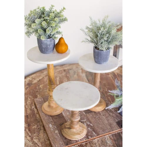Kalalou NART1000 Conjunto de três suportes de madeira com parte superior, madeira/mármore