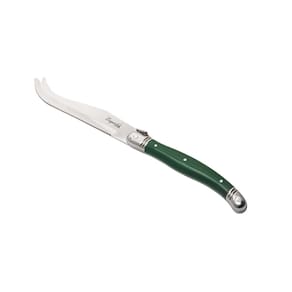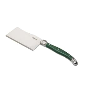 Toda a tradição das facas Laguiole é encontrada na linha Luxo. A lâmina é feita em aço inoxidável de altíssima qualidade com cabo em ABS verde. O conjunto de facas é entregue em uma elegante bandeja de madeira.