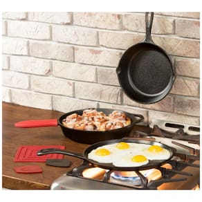 O conjunto de panelas de ferro fundido temperado inclui chapa de , frigideira de , frigideira de , suporte de panela de silicone vermelho de 6, luva de alça de silicone vermelha, raspador de panela vermelha e raspador de panela preta. O ferro fundido é incomparável na retenção de calor e aquecimento uniforme. Temperado com óleo para um acabamento natural e de fácil liberação que melhora com o uso. As ferramentas certas para selar, refogar, ferver, refogar, assar, assar, assar e fritar. O ferro fundido está em casa no forno, no fogão, na grelha ou na fogueira ótimo para cooktops de indução. Os acessórios de silicone são laváveis na máquina de lavar louça e resistentes ao calor Marca: Não Informado