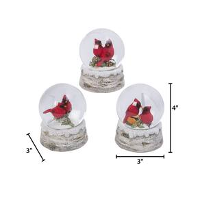 Conjunto de 3 globos de neve cardinais de resina de 4,25 polegadas