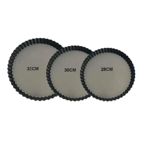 Conjunto de 3 moldes: - 1 molde de 28 cm de diâmetro.- 1 molde de 30 cm de diâmetro.- 1 molde de 32 cm de diâmetro. -Altura: 3CM- Material: Metal-As medidas são ideais para preparar sobremesas ou pratos de diferentes tamanhos. -Os moldes são feitos de aço, de alta dureza, duráveis e sensíveis ao calor, o que pode fazer com que os alimentos aqueçam uniformemente. - Com o fundo solto removível, é conveniente retirar e decorar uma refeição deliciosa e acelera o resfriamento. -Resistente ao desgaste, fácil de limpar, saudável e inofensivo. -Antiaderente, bordas planas. - Design redondo de corpo curto, pode ser para fazer pizzas, frango assado, torta, kuchen, tortas, pés e outros pratos de pastelaria.