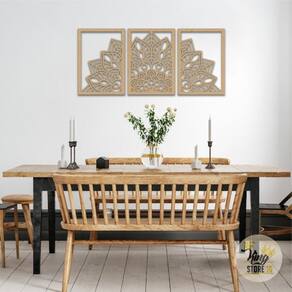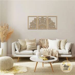 Somos THE KING STORE 10 ______________________________________________________________________________________ Pintura decorativa de mandala feita com corte a laser para gerar um acabamento imbatível. Cor: natural Material: madeira MDF Espessura: 3 mm Medida: 50 cm x 110 cm Cada moldura tem 50 cm de altura x 35 cm de largura. Vem com fita adesiva de duplo contato para ser colocada diretamente na parede ou na superfície desejada (é recomendável limpar muito bem a superfície antes de colar a foto). Enviar para ALL CHILE